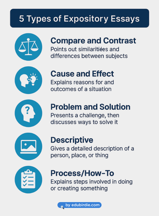 An expository essay clearly explains a topic—no opinions, no drama, just facts, and straightforward analysis. It’s about breaking down ideas, showing how something works, or describing a process step-by-step (similar to a process essay). You’ll encounter expository writing in textbooks, instructional manuals, reports, and even professor emails.