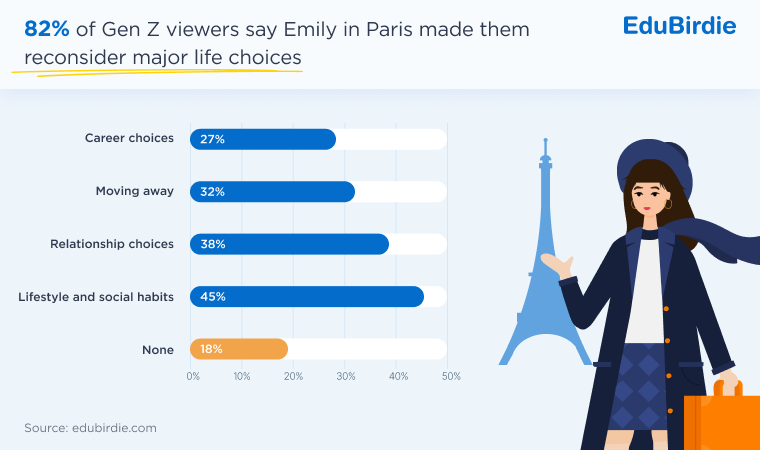 Ahead of season five, EduBirdie surveyed 2,000 Gen Z viewers on whether Emily in Paris still holds their attention, how they feel about the Netflix hit’s most prominent characters, and how the show has influenced their lives.