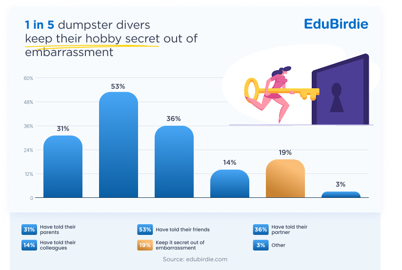 While some are happy to get their hands dirty and share it across social media, for many millennials and Gen Z, dumpster diving is still a little too embarrassing to admit to, with 19% keeping their hobby secret from friends, family, and colleagues.